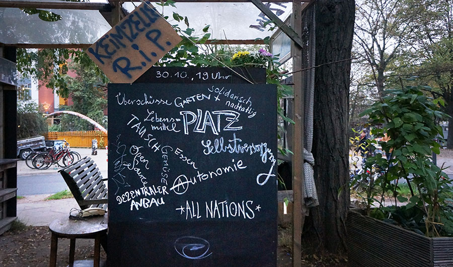 -Es steht die Idee im Raum, die Fläche der jetzigen "Keimzelle" im Karoviertel nicht einfach aufzugeben, sondern einen Platz der Solidarität und der Nachhaltigkeit und der städtischen Lebensmittelversorgung zu schaffen, auf dem unterschiedliche Gruppen & Einzelpersonen zusammenkommen können, um Lebensmittel-Überschüsse und Info´s auszutauschen, veganes Essen zu kochen und Gemüse anzubauen.